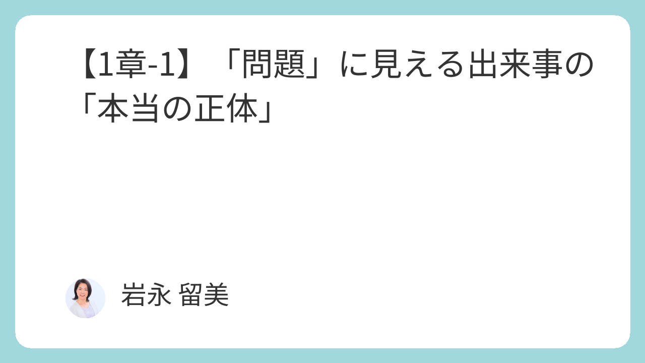 【1章-1】「問題」に見える出来事って、本当は・・・?!