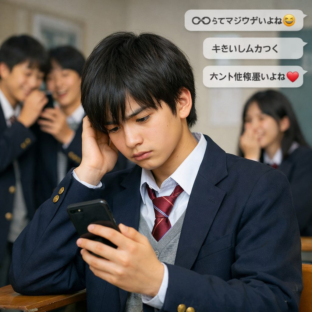 最初は、軽いノリのスタンプと一緒に、次々とコメントがついていきます。悠人くんも、場の空気を壊したくなくて、「おい、それ消せよ〜(笑)」と返しました。本当は、胸がチクリと痛んでいたのに。