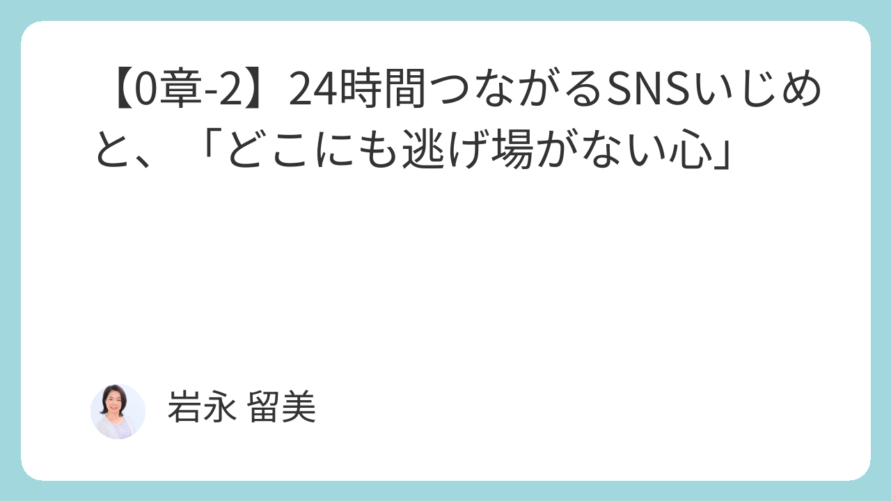【0章-2】24時間つながるSNSいじめと、「どこにも逃げ場がない心」